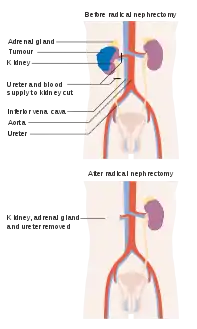 ![]() قبل وبعد استئصال جذري للكلية | |