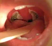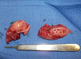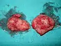 ![]() لوزتان مستأصلة مباشرةً بعد عملية إزالتهما. | |