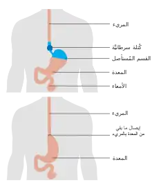 في معظم الحالات، تزرع المعدة في العنق ووتأخذ المعدة مكان في الأصل يحتلها المريء، في بعض الحالات، يتم استبدال المريء الذي تم إزالته بهيكل مجوف آخر، مثل القولون.