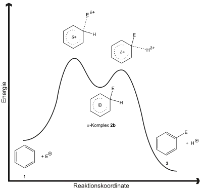 مخطط طاقة التنشيط لتفاعل الاستبدال العطري المحب للإلكترونات
