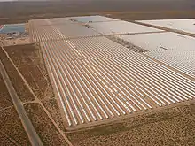 نظم توليد الطاقة الشمسية (SEGS) هو الاسم المعطى لتسع محطات توليد الطاقة الشمسية في صحراء موييف التي بنيت في 1980. هذه المحطات لها القدرة على الجمع بين 354 ميغاوات مما يجعلها أكبر تركيب من الطاقة الشمسية في العالم.[5] نيفادا الشمسية هي محطة جديدة للطاقة الشمسية الحرارية مع 64 ميغاواط لتوليد الطاقة، وتقع بالقرب من بلودير سيتي، نيفادا.[6] وهناك أيضا خطط لبناء محطات كبيرة أخرى للطاقة الشمسية في صحراء موهافي. موهافي سولار بارك سيلقي 553 ميغاواط من الطاقة الشمسية الحرارية عندما يعمل بكامل طاقته في عام 2011.[7]