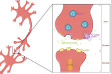 تشابك عصبي أثناء الاسترداد. لاحظ أنَّ بعض النواقل العصبية تُفقد ولا يُعاد امتصاصها