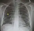 ![]() صورة مقطعية تُظِهر وجود هواء في المنصف صورة مقطعية تُظِهر وجود هواء في المنصف | |