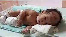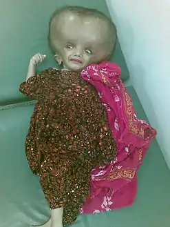![]() تضخم حجم الرأس بشدة بسبب استسقاء الدماغ في طفلة عمرها 11 شهر تضخم حجم الرأس بشدة بسبب استسقاء الدماغ في طفلة عمرها 11 شهر | |