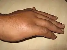 أصبع البنصر أو الخاتم من كلتا اليدين لنفس الشخص, ويظهر الاستسقاء في الاصبع الأيمن بسبب داحس حاد .