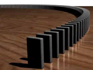 من السهل التمعن في تأثير الدومينو حيث يمكن شرحها كما يلي: