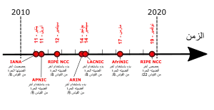 |CitationClass=تم تجاهله (مساعدة) - "Free Pool of IPv4 Address Space Depleted". NRO.net (باللغة الإنجليزية). 3 فبراير 2011. مؤرشف من الأصل في 21 يناير 2018. اطلع عليه بتاريخ 18 يناير2020. الوسيط