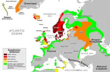 - المقاومة الكبيرة لغارات الفايكنغ في الجزر البريطانية وأوروبا القارية في أواخر القرن التاسع دفعت الفايكنغ للسعي إلى فرص أكثر سلاماً.