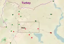 ![]() آثار القصف الجوي من قبل الحكومة السورية لأعزاز في محافظة حلب، 18 أغسطس 2012. | |||||||