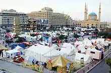 احتجاجات المعارضة اللبنانية 2006–2008 هي حركة احتجاجية ومحاولة ضغط لإقالة حكومة فؤاد السنيورة الأولى، قام بها تحالف المعارضة المؤلفة من حزب الله، حركة أمل، التيار الوطني الحر وتيار المردة بالإضافة لبعض التنظيمات المنضوية تحت رايتهم. وبدأ الاعتصام في 30 تشرين الأول 2006 بنصب أكثر من 600 خيمة حول مقر رئاسة الحكومة في وسط بيروت. تم فكّ الاعتصام مع نجاح اتفاق الدوحة في 21 أيار 2008 بعد 18 شهرًا على بدايته.[1]