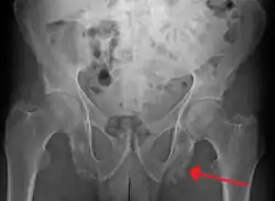 ![]() اعتلال مرتكز العظم في الحوض ربما بسبب التهاب الفقار المقسط اعتلال مرتكز العظم في الحوض ربما بسبب التهاب الفقار المقسط | |