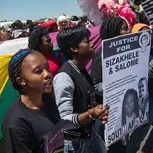 |CitationClass=تم تجاهله (مساعدة) - "Activism makes inroads on 'corrective rape'". IRIN. 2011-03-15. مؤرشف من الأصل في 17 أكتوبر 2018. اطلع عليه بتاريخ 02 مايو 2016. الوسيط