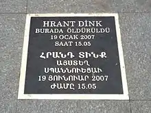 |CitationClass=تم تجاهله (مساعدة) - "Dink'in öldürülmesine tepki yağdı". صحيفة حريت (باللغة التركية). 19 January 2007. مؤرشف من الأصل في 17 أكتوبر 2012. اطلع عليه بتاريخ 19 يناير 2007. الوسيط