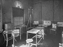 وصلت سيارة الإسعاف التي ستنقل ماكينلي إلى مستشفى المعرض في الساعة الاربعة واثنين وعشرين دقيقة. وعلى الرغم من تعامل المستشفى مع الإصابات الطبية الطفيفة لزوار المعرض، كانت بها غرفة للعمليات. وفي وقت إصابه الرئيس، لم يكن بالمستشفى سوى الممرضات والأطباء المتدربين، ولم يكن هناك أي طبيب مؤهل.[50] وكان الدكتور روزويل بارك، أفضل جراح بالمدينة ومدير الأطباء بمستشفى المعرض، في زيارة إلى شلالات نياجار للقيام بعملية جراحية دقيقة في الرقبة. عندما قاطعوه أثناء إجراء العملية في السادس من سبتمبر، أجاب أنه لا يمكنه المغادرة حتى لو من أجل رئيس الولايات المتحدة نفسه. ثم أبلغوه بخبر إطلاق الرصاص على الرئيس. وعقب مرور أسبوعين، أنقذ بارك حياة امرأة تعاني من إصابات مماثلة تقريبًا للإصابات التي يعاني منها ماكينلي.[51][52] وكان أول طبيب يصل المستشفى هو هيرمان مينتر، وكان قد التقى بالرئيس في اليوم السابق للحادثة، وقال له ماكينلي مازحًا، الذي يمتلك ذاكرة جيدة للوجوه، أنه عندما قابل مينتر لم يكن يتوقع أنه سيحتاج إلى خدماته المهنية.[53] وبينما كان على طاولة العمليات، تحدث عن كولغوش قائلًا: هذا المسكين لا يعرف ما يفعله، ولا يستطيع أن يعرف.[54] عندما وجدوا أن بارك لن يأتي وأن ضوء النهار بدأ في التلاشي، وهو مصدر الضوء الرئيسي بغرفة العمليات، عندما وصل الجراح الدكتور ماثيو دي مان، قرروا أن يقم بإجراء العملية في الحال محاولًا إزالة الرصاصة المتبقية.[52] قام مينتر بحقن ماكينلي بحقنة مورفين وستريكنين لتخفيف ألمه وأعطى مان، الطبيب النسائي المرموق الذي ليس لديه أية خبرة عن جروح البطن، جرعة من الإيثر لتخدير ماكينلي لأنه كان يتألم ويتمتم بالصلاة الربيّة.[53]