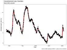 |CitationClass=تم تجاهله (مساعدة) - "Roy Morgan Unemployment & Under-employment Estimates (2005–2019)". Roy Morgan Research. مؤرشف من الأصل في 12 نوفمبر 2020. اطلع عليه بتاريخ 16 مايو 2019. الوسيط