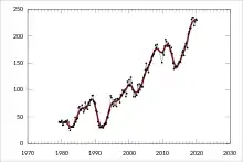 | 1988 | ▲283.0 | ▲16,962 | ▲4.3% | غير معلوم | ||