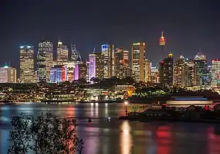 ![]() «منطقة الأعمال المركزية في سيدني هي أكبر مركز للخدمات المالية والتجارية في أستراليا.» | |