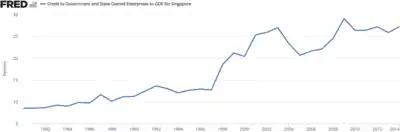 يُعد القطاع العام مُستثمرا ومُحفزا رئيسيا للتنمية الاقتصادية والابتكار. تمتلك حكومة سنغافورة صندوقين للثروة السيادية هُما تيماسيك هولدنغز وجي آي سي برايفت ليمتد، ويُستخدمان لإدارة احتياطيات البلاد.[78] في البداية كان دور الدولة مُوجهًا أكثر نحو إدارة الصناعات من أجل التنمية الاقتصادية، ولكن في العقود الأخيرة تحولت أهداف صناديق الثروة السيادية في سنغافورة نحو القطاع التجاري.[79]
