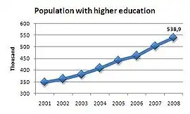 |CitationClass=تم تجاهله (مساعدة) - "Population with tertiary education". data.oecd.org. مؤرشف من الأصل في 25 سبتمبر 2019. اطلع عليه بتاريخ 25 مارس 2018. الوسيط