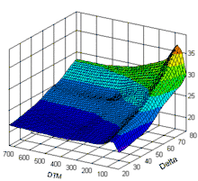 يرتبط ارتباطًا وثيقًا بابتسامة التقلب ، حيث يُلاحظ أن التقلب الضمني - التقلب المقابل لسعر B S M - يختلف كدالة لسعر الإضراب (أي النقود) ، وهذا صحيح فقط إذا كان توزيع تغيير السعر غير طبيعي ، على عكس ذلك المفترض بواسطة B S M. يصف مصطلح مصطلح التقلب مدى اختلاف التقلب (الضمني) بالنسبة للخيارات ذات الصلة مع آجال استحقاق مختلفة. سطح التقلب الضمني هو ثم مؤامرة سطح ثلاثية الأبعاد من ابتسامة التقلب وهيكل المدى. هذه الظواهر التجريبية تنفي افتراض التقلب المستمر والسجلات الطبيعية - التي بنيت عليها بلاك سكولز ؛ [22][39] انظر نموذج بلاك سكولز تقلب ابتسامة.