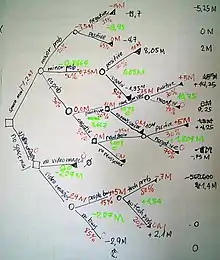 وبشكل أكثر تقليدية ، تم استخدام أشجار القرارات - التي تكمل بعضها البعض - لتقييم المشروعات ، من خلال دمجها في التقييم (جميع) الأحداث (أو الولايات) المحتملة وقرارات الإدارة المترتبة عليها ؛ [29][31] معدل الخصم الصحيح هنا يعكس "كل نقطة غير قابلة للتنوع تتطلع إلى الأمام".[29] (هذه التقنية تسبق استخدام خيارات حقيقية في تمويل الشركات ؛ [32] فهي مستعارة من بحوث العمليات ، وليست "تنمية اقتصادية مالية" في حد ذاتها.)