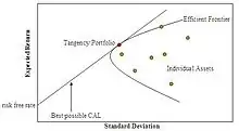بشكل عام ، إذن ، بينما تدرس نظرية المحفظة كيف ينبغي للمستثمرين الموازنة بين المخاطر والعائد عند الاستثمار في العديد من الأصول أو الأوراق المالية ، فإن CAPM أكثر تركيزًا ، ويصف كيف ، في التوازن ، تحدد الأسواق أسعار الأصول فيما يتعلق بمدى خطورة هذه المخاطر. الأهم من ذلك ، ستكون هذه النتيجة مستقلة عن مستوى كره المخاطرة لدى المستثمر و/ أو وظيفة الأداة المفترضة ، وبالتالي توفير معدل خصم محدد بسهولة لصناع القرار في تمويل الشركات على النحو الوارد أعلاه ، [19] وبالنسبة للمستثمرين الآخرين. تستمر الحجة على النحو التالي: إذا كان بإمكان المرء إنشاء حدود فعالة - أي كل مجموعة من الأصول التي تقدم أفضل مستوى متوقع من العائد لمستوى المخاطرة الخاص بها ، انظر الرسم البياني - ثم يمكن تشكيل محافظ كفاءة التباين المتوسط ببساطة على أنها مزيج من حيازات الأصول الخالية من المخاطر و" محفظة السوق " (نظرية فصل صناديق الاستثمار المشتركة) ، مع التخطيط هنا للتخطيط كخط لسوق المال ، أو CML. بعد ذلك ، بالنظر إلى CML ، فإن العائد المطلوب على الأوراق المالية المحفوفة بالمخاطر سيكون مستقلاً عن وظيفة المرافق للمستثمر ، وسيتم تحديده فقط من خلال التغاير ("بيتا") مع المخاطر الإجمالية ، أي السوق. وذلك لأن المستثمرين هنا يمكنهم بعد ذلك زيادة الفائدة من خلال الرافعة المالية بدلاً من التسعير ؛ انظر مخطط CML. كما يتضح من الصيغة جانبا ، فإن هذه النتيجة تتسق مع ما سبق ، حيث تساوي العائد بلا مخاطرة بالإضافة إلى تعديل للمخاطر.[11] (تم تقديم الحدود الفعالة بواسطة هاري ماركويتز في عام 1952. تم اشتقاق CAPM بواسطة Jack Treynor (1961 ، 1962) ، وWilliam F. Sharpe (1964) ، وJohn Lintner (1965) وJan Mossin (1966) بشكل مستقل.)