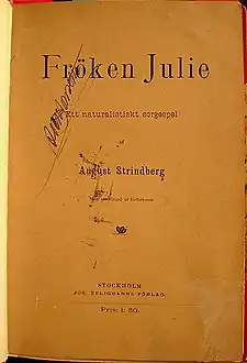 - ^ a b c August Strindberg, La signorina Julie. in La signorina Julie. Il padre., Introduzione e traduzione di Franco Perrelli., BUR, 1993. pag. 16.