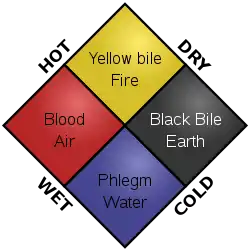 | أسود الصفراء | الخريف | الأرض | الطحال | بارد وجاف | كئيب | قنوط، هادئ، تحليلي، جاد |