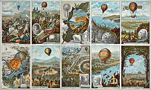 | صور لرحلات المنطاد مرسومة على البطاقات في القرن 19. |