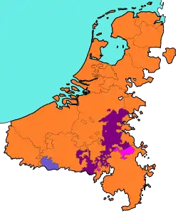 - دوقية برابنت شملت منذ 1288 أيضاً دوقية ليمبورغ (اليوم جزء من لياج البلجيكية) وأراضي "أوفرماس" دالهيم، فالكنبورخ آن دي خول وهرتسوغنرات (الآن جزء من ليمبورخ الهولندية).