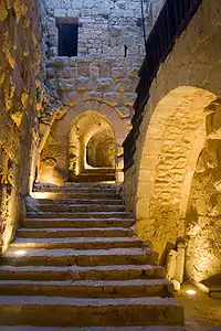 وكان أول عمل قام به أبو العباس السفاح هو نقل مقر الخلافة من دمشق إلى بغداد.[67] وبانتقال عاصمة الخلافة إلى بغداد أصبح موقع الأردن هامشياً مقارنة مع الخلافة السابقة. وهجرت بالتالي قصور الصحراء التي بناها الأمويون لممارسة الصيد ولتكون بذلك محطات تقف عندها القوافل التجارية وقوافل الحجاج المتوجهة للديار المقدسة فيما بعد. وعندما شهد القرنين العاشر والحادي عشر ازدياد نفوذ الفاطميين الذين حكموا مصر وأستولوا عام 969 على الأردن. في بداية القرن الثاني عشر الميلادي تعرضت بلاد الشام لهجمات الحملات الصليبية الشرسة والتي ألقت الأردن في أتون نيران حرب مستعرة. بنى الملك بالدوين الأول خطاً من القلاع في عمود الأردن الفقري بهدف حماية الطرق المؤدية للقدس. ثم وحد بالدوين الأول سوريا ومصر تحت حكمه. لكن صلاح الدين الأيوبي أخرج الصليبين من القدس عام 1187 ميلادي بعد أن هزمهم في معركة حطين مما حرر البلاد من الوجود الأجنبي وخلصت الأردن من السيطرة الأجنبية. ازدهرت الأردن في العهد الأيوبي والمملوكي وأتحد مع مصر وسوريا واحتل موقعاً بارزاً بين جاراته. وأعيد بناء حصونه وخاناته كي ينزل فيها الحجاج وهم في طريقهم إلى مكة والمدينة ومن أجل تعزيز منعة طرق التجارة والأتصالات. كذلك أزدهرت في الأردن في هذا العهد وفي وادي الأردن بالذات حيث أنشأت محطات تنقية السكر المدارة بواسطة الماء. تعرضت المنطقة لهجمة جديدة للتتار في عام 1401 ميلادية، مما تسبب إضافة لضعف الحكومات وانتشار الأمراض في بعض المناطق إلى ضعف المنطقة كلها. وما لبث الأتراك العثمانيون أن هزموا المماليك عام 1516 وبهذا أصبحت الأردن جزءا من الدولة العثمانية وبقيت هكذا طيلة 400 عام.[63] تزخر البادية الشرقية للأردن والمناطق الجبلية الوسطى بالمعالم التاريخية في العصور الإسلامية المختلفة، حيث اتخذت الآثار والقصور الحصينة والقلاع والأبراج معالم مضمخة بروائح التاريخ. حيث يوجد عديد من القلاع التي بنيت على مر العصور لتكون موطن أمن وأمان للدفاع عن البلاد. فهناك قلعة الأزرق التي تعود إلى عهد الرومان والعرب، وقلعة الربض طراز الفن المعماري عند المسلمين العرب، وكان الهدف من بنائها رصد تحركات الصليبيين من حصن كوكب الهواء واستغلال مناجم الحديد في جبال عجلون التي تسمى مغارة وردة. وإبقاء الطرق التجارية مع دمشق وشمال سوريا. وهناك أيضا قلعتا الكرك وقلعة الشوبك، وتعودان إلى فترة الحروب الصليبية، وتقعان في مناطق جبلية وعرة وفيهما الأروقة وأبراج والاستحكامات التي تدل على طراز الفنون الحربية في القرون الوسطى. بالإضافة إلى تلك القلاع، توجد قلاع أخرى في العقبة والحسا والقطرانة شاهدة على العصور المختلفة في التاريخ الإسلامي.[68]