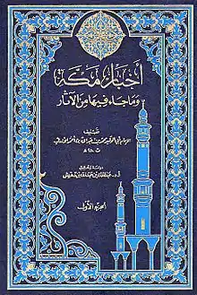 ويذكر إسماعيل باشا البغدادي في كتابه(هدية العارفين:أسماء المؤلفين وآثار المصنفين) أن محمد بن عبد الله الأزرقي المكي صنف كتاباً رائعاً لتاريخ مكة، اشتمل على أخبارها وجبالها وأوديتها المتعددة وكتاب أخبار مكة ضحم لشموليته على وصف مفصل للشعائر الدينية المتعلقة بالحج[؟] والعمرة.