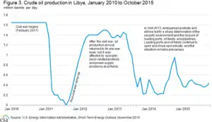 - "Country Analysis Brief: Libya" (PDF). US Energy Information Administration. 19 November 2015. مؤرشف من الأصل (PDF) في 11 مايو 2019. اطلع عليه بتاريخ 14 أبريل 2016. الوسيط