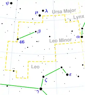 | ألمع نجم | 46 الأسد الأصغر (3.83قدر ظاهري) |