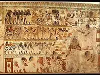 حاملو الجزية من غرب آسيا في مقبرة سوبختب حوالي 1400 ق.م، طيبة، المتحف البريطاني.