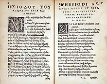 صورة لمطبوع يعود لسنة 1539 لقصيدة الأعمال والأيام