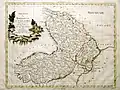 مقاطعات رومانيا الثلاث وتظهر إمارة الأفلاق (باللون الأخضر) وإمارة مولدافيا (البرتقالي) وترانسيلفانيا (الأصفر).