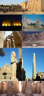 الأقصر تلقب بمدينة المائة باب أو مدينة الشمس،[7] عُرفت سابقاً باسم طيبة، هي عاصمة مصر في العصر الفرعوني،[بحاجة لمصدر] تقع على ضفاف نهر النيل والذي يقسمها إلى شطرين البر الشرقي والبر الغربي، وهي عاصمة محافظة الأقصر جنوب مصر، تقع بين خطى عرض 25-36 شمالاً، 32-33 شرقاً، وتبعد عن العاصمة المصرية القاهرة حوالي 670 كم،[8] وعن شمال مدينة أسوان بحوالي 220 كم، وجنوب مدينة قنا حوالي 56 كم، وعن جنوب غرب مدينة الغردقة بحوالي 280 كم،[8] يحدها من جهة الشمال مركز قوص ومحافظة قنا، ومن الجنوب مركز إدفو ومحافظة أسوان، ومن جهة الشرق محافظة البحر الأحمر، ومن الغرب مركز أرمنت ومحافظة الوادي الجديد،[9] أقرب الموانئ البحرية للمدينة هو ميناء سفاجا، وأقرب المطارات إليها هو مطار الأقصر الدولي.