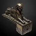 تمثال أبو الهول البرونزي لتحتمس الثالث فوق تسعة أقواس؛ وتظهر أيضًا عمود جد دومينيون على جانب القاعدة.