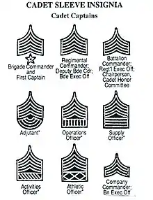 نُظمَت فليقيات الطلاب المتدربين في شكل لواء. و يُعرَف قائد اللواء بالنقيب. و يُقسَم اللواء إلى أربعة أفواج. كل فوج يحتوي على ثلاث كتائب، و كل كتيبة تتكون من ثلاث فرق.[134] و يُرمَز للكتائب بالحروف من A إلى I و رقم يوضح الفوج التي تنتمي إليه. على سبيل المثال يوجد أربعة كتائب A هم A1، و A2، و A3، و A4. يشغل طلاب الدفعة الأولى المناصب القيادية داخل اللواء بداية من منصب النقيب (قائد اللواء) و صولا إلى مناصب مثل قيادة فصيل داخل كتيبة. و تقل مسئولية القيادة بتتدرج الصفوف، إذ تقل بالدفعات الأدنى. فيحمل طلاب الصف الثاني رتبة رقيب، و يحمل طلاب الصف الثالث رتبة عريف، و يحمل طلاب الصف الرابع رتبة عسكري.[135]