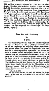 المراجع (أو "المرجع" ؛ Bedeutung ) لاسم مناسب هو الكائن الذي يعنيه أو يشير إلى ( bedeuten )، في حين أن معناه ( Sinn ) هو ما يعبر عنه الاسم. مرجع الجملة هو قيمتها الحقيقية، في حين أن معناها هو الفكرة التي تعبر عنها. برر Frege التمييز بعدة طرق.