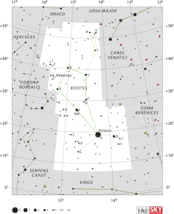 | Eps Boo, Izar, Pulcherrima, Mirac, Mirak, Mirach, 36 Boo, BD +27 2417, هيباركوس 72105[10] A: HD 129989, HR 5506, SAO 83500.[11] B: HD 129988, HR 5505.[3] | |