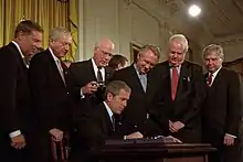 بعد الهجوم الإرهابي في 11 سبتمبر 2001، مررت إدارة الرئيس جورج دبليو بوش تشريعات غير مسبوقة ردا على طلب الرأي العام الأميركي.[24] بعد ثلاثة أيام، أقر الكونغرس قانون يسمى التفويض لاستخدام القوة العسكرية، وإعطاء الرئيس بوش القوة العسكرية بأي طريقة تبدو "مناسبة أو ضرورية ضد دول غير محددة أو قوى أخرى."[25] ستة أسابيع بعد 9/11، صدر قانون باتريوت، موسعا كثيرا من قدرات عدة وكالات حكومية للحصول على المعلومات عن طريق التفتيش، والمراقبة الإلكترونية والتنصت على المكالمات الهاتفية. هذا القانون نفسه أيضا أعلن عن إمكانية عمل تفتيش لا يتطلب من الحكومة أن يخطر مالك المكان أنه تم تفتيشه لمدة تصل إلى 90 يوما. ويرى بعض العلماء أن مرور قوانين مثل قانون باتريوت كان عبارة عن استفادة سياسية من خوف العامة الأمريكيين حينها عن طريق تقنين سياسات عنصرية.[26] وجد استطلاع للرأي أجري بعد وقت قصير من هجمات 9/11 الإرهابية أن حوالي ثلث الأمريكيين يعتقد أنه من المقبول احتجاز الأمريكيين العرب في مخيمات شبيهة بتلك الخاصة باعتقال الأميركيين من أصل ياباني خلال الحرب العالمية الثانية.[27] وجد مركز بيو للأبحاث في عام 2004 أن ما يقرب من نصف الأميركيين كانوا على استعداد للتخلي عن بعض الحريات المدنية في صالح الأمن القومي.[28]