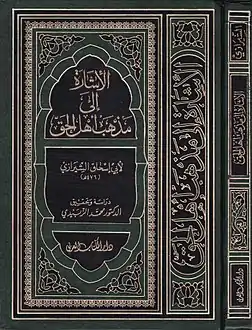 |CitationClass=تم تجاهله (مساعدة) - كتاب: الإشارة إلى مذهب أهل الحق، للإمام أبي إسحاق الشيرازي، تحقيق: محمد السيد الجليند، الناشر: المجلس الأعلى للشؤون الإسلامية (مصر)، تاريخ النشر: 1999م، ص: 12-13.