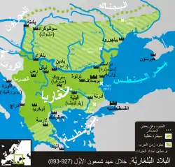 ![]() بلغاريا خلال فترة حكم سيميون العظيم في القرن العاشر الميلادي | |||||||