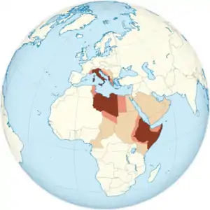 - 2) في شمال إفريقيا الساحلية، من تونس إلى ليبيا (كانت فزان ليبيا تعتبر مستعمرة للإمبراطورية).