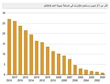 - وصل عدد مستخدمي الإنترنت في السعودية بنهاية عام 2017م إلى 26 مليون مستخدم.[12]