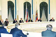 فلاديمير بوتين في اجتماع مع الاتحاد سنة 2001.