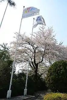 ![]() علمي الاتحاد العالمي للتايكوندو والإتحاد الكوري للتايكوندو كوكي وون يرفرفان في مقرهم الرئيسي في عاصمة | |