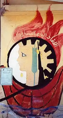 شعار الاتحاد العام للمرأة السورية , رسمت على جدار مكتب الاتحاد العام للمرأة السورية في طرطوس
